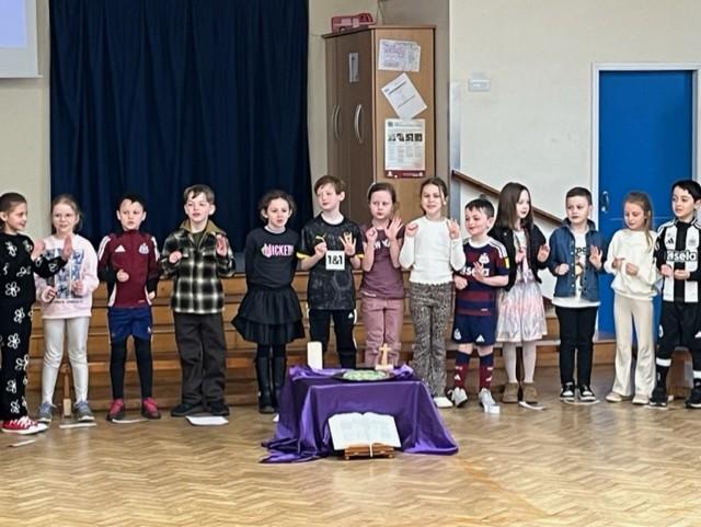 Year 3 thought about the sacrifices Jesus made during his 40 days and nights in the desert and how we could be inspired to pray, give and fast during Lent. They used these ideas as inspiration for their Celebration of the Word.